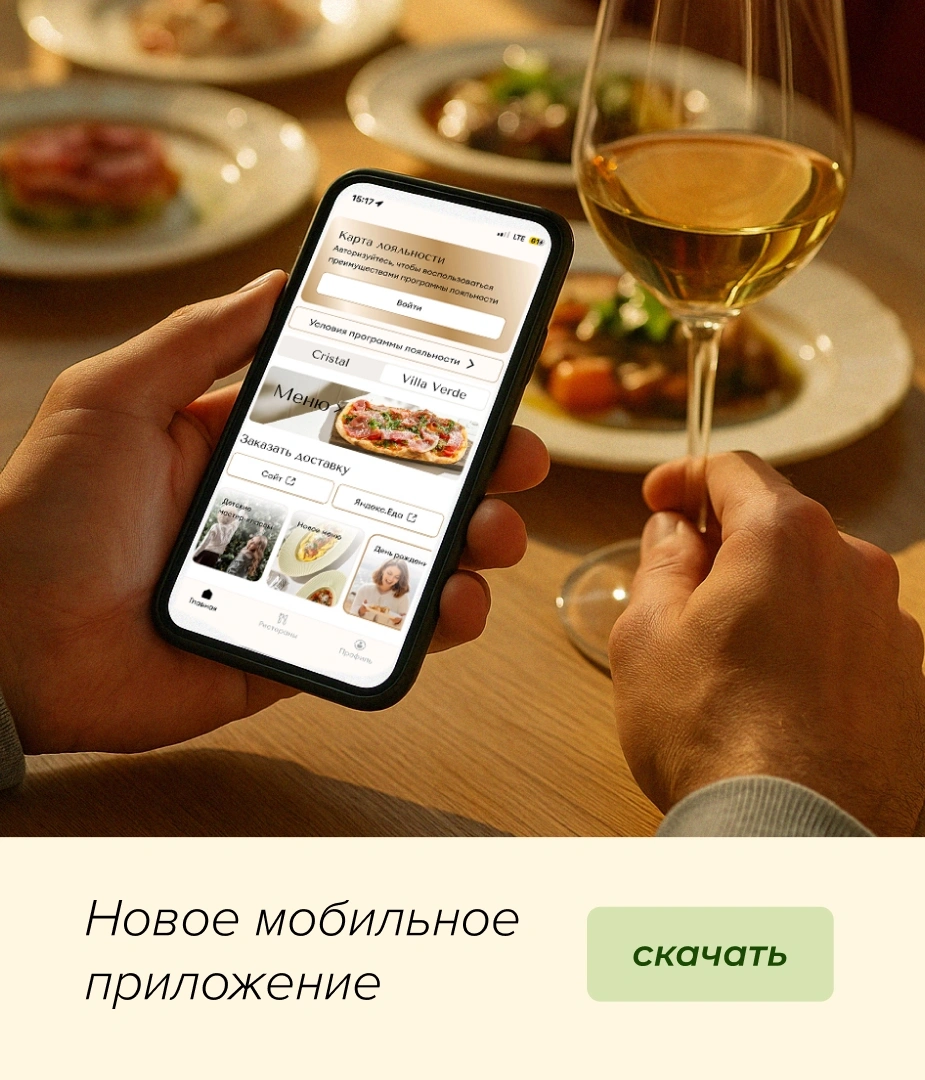 Ресторан VILLA VERDE представляет новинки со средиземноморскими лейтмотивами: салат романо с жареным цыплёнком на углях, гороховый суп с беконом, паста ригатони с томатами и пармезаном — блюда, которые станут частью неспешного обеда и наполнят даже самый пасмурный и холодный день солнечным настроением Италии.