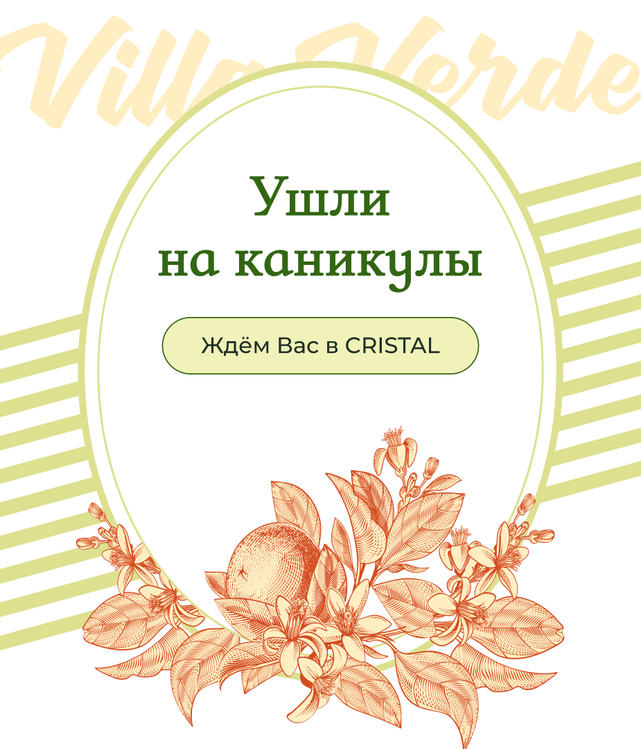 Барная картаАтмосфера VILLA VERDE позволяет полностью расслабиться, наслаждаясь покоем и безмятежностью. Интерьер напоминает загородную резиденцию и переносит на живописные террасы с видом на береговую линию.