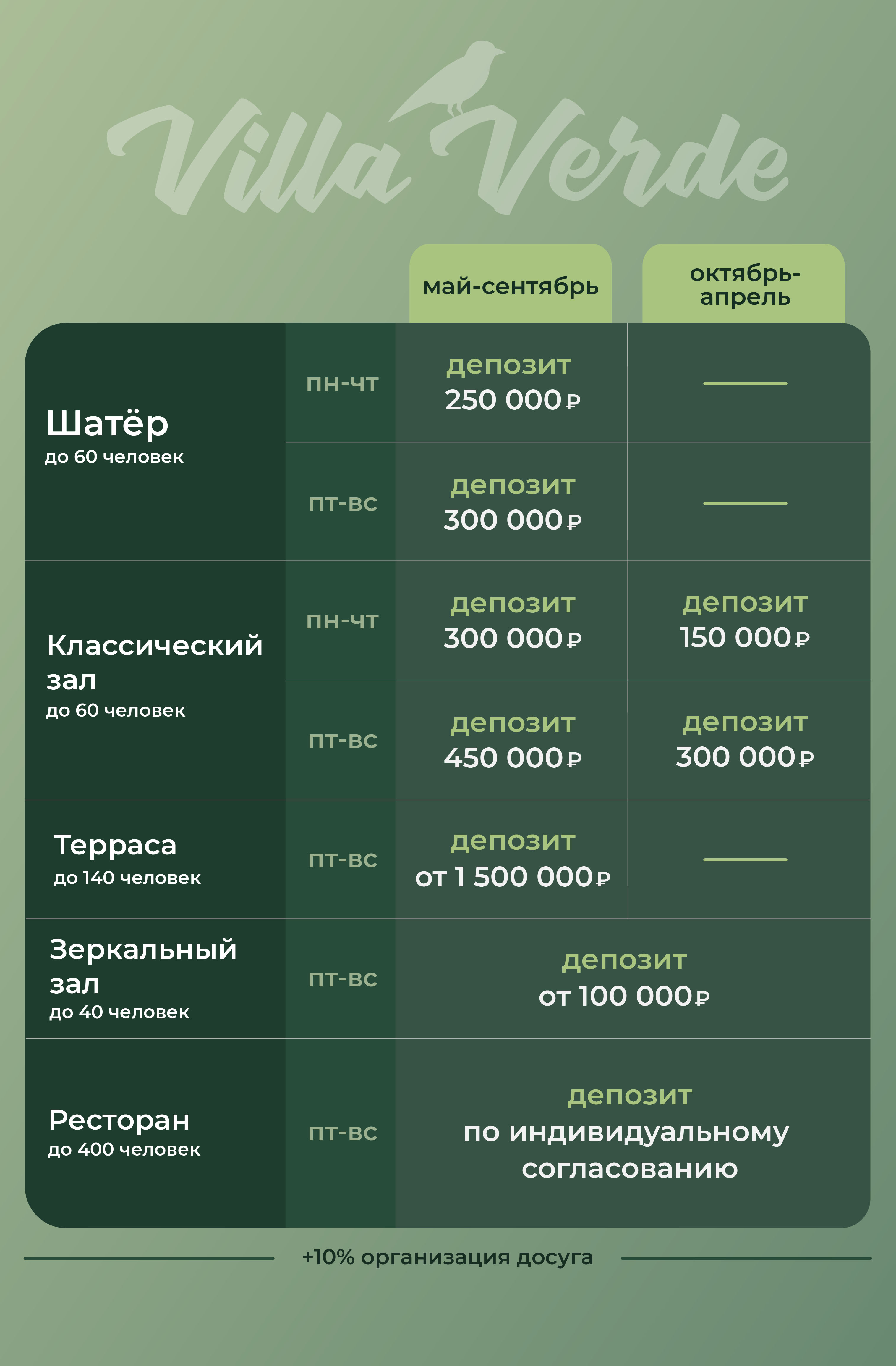 У нас проходят как масштабные события, так и маленькие праздники. Если Вы ищете ресторан для банкета на 20 человек, наше заведение на берегу залива прекрасно подойдёт. Среди преимуществ VILLA VERDE: