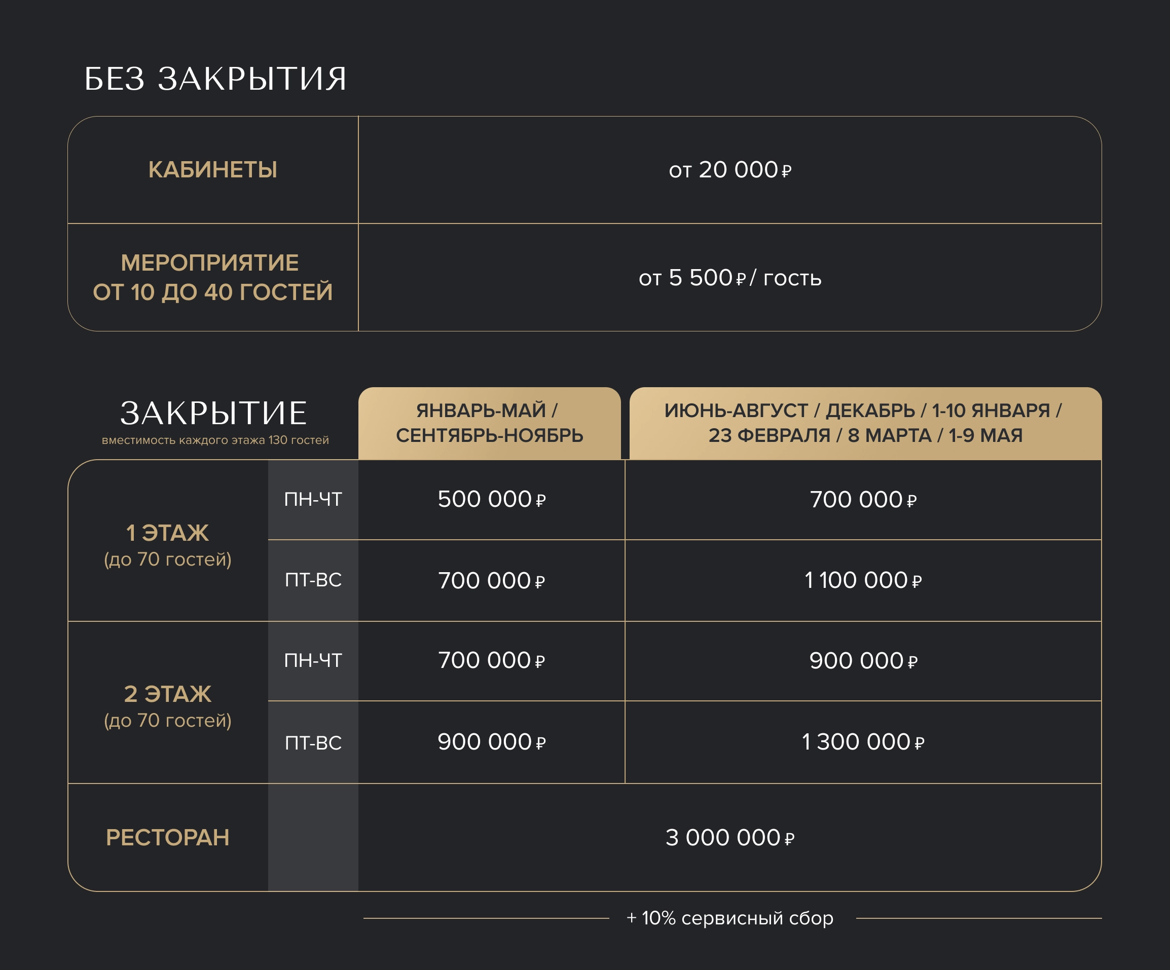 *Подробности лояльности уточняйте у банкетного менеджера.
